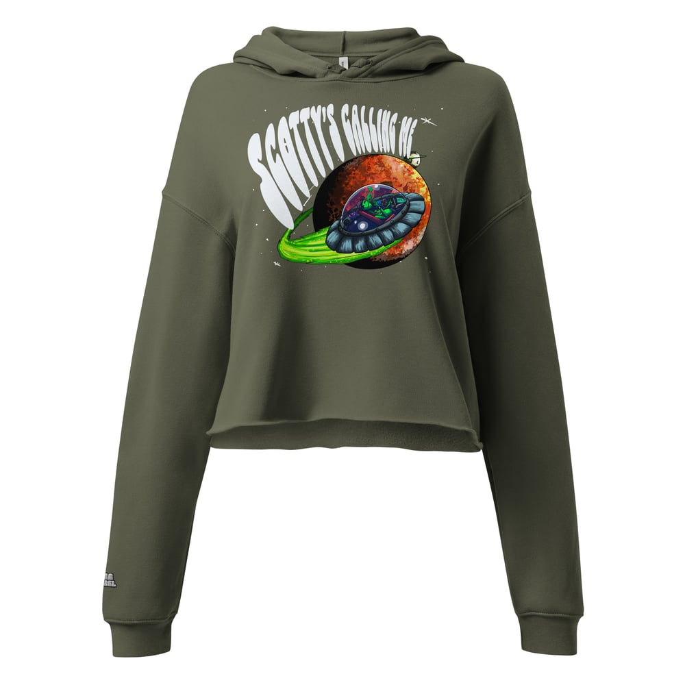 This cropped hoodie features the playful “Scotty’s Calling Me” design, perfect for anyone who’s ready to beam up and dip out. Soft, flattering, and perfectly fitted, it brings cosmic energy with a feminine edge. Wear it for off-planet errands, Earthbound lounging, or whenever the vibes say: it’s time to go, girl.The trendy raw hem and matching drawstrings means that this hoodie is bound to become a true favorite.